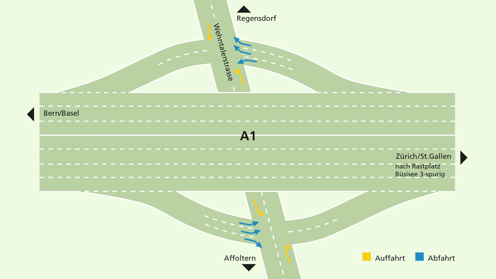 Der Anschluss Zürich-Affoltern wurde neu konzipiert. Die Anpassung ist mit dem Abschluss der Arbeiten zwischen Zürich-Nord und Affoltern bereits erfolgt. Die neue Lösung verbessert den Verkehrsfluss auf der Autobahneinfahrt und verringert den Rückstau in Richtung Regensdorf und Zürich. Damit verbessert sich auch die Sicherheit der Fussgänger und Radfahrer.