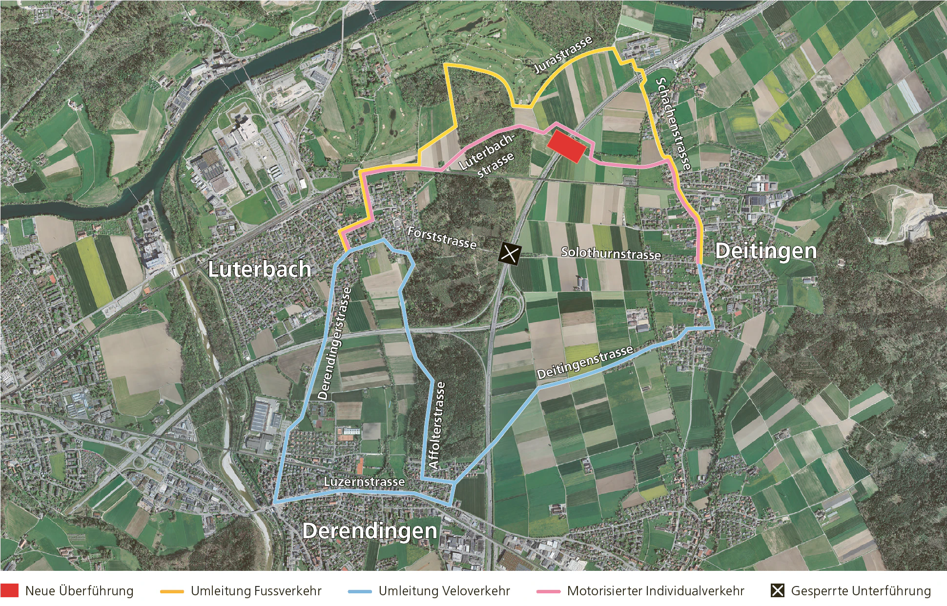 Die Autobahnüberführung Luterbachstrasse wird neu gebaut. Wie kommt man während der Bauzeit von Luterbach nach Deitingen und umgekehrt?