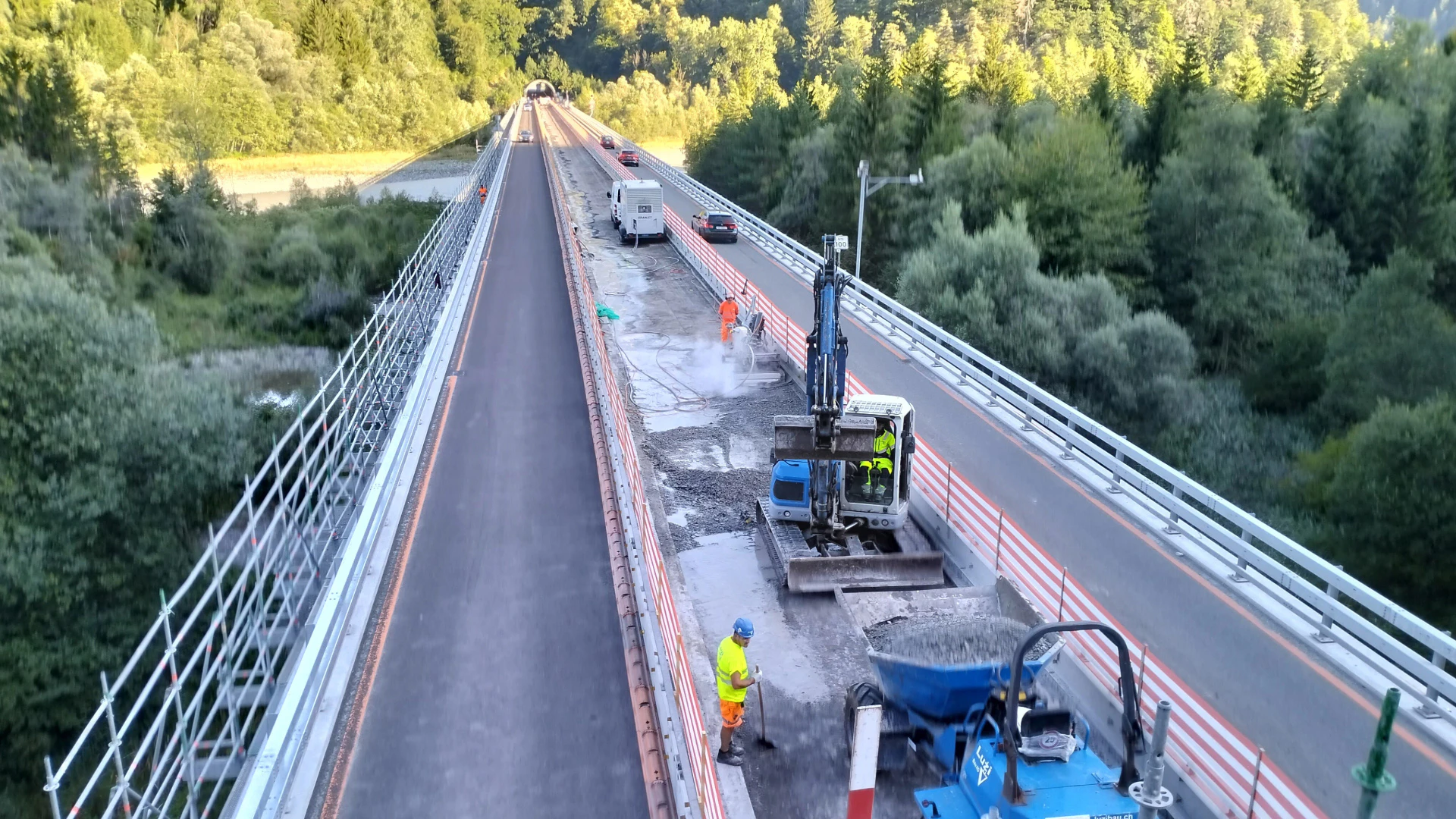 Während den Bauarbeiten verbleibt der Verkehr grundsätzlich auf dem Trasse der A13. Dazu wird pro Fahrtrichtung jeweils eine Fahrspur mit teilweise eingeschränkter Breite gewährleistet. In der Nacht wird der Verkehr zeitweise mit einer Lichtsignalanlage geregelt. Während den Bauarbeiten im Bereich des Bahnhofs Reichenau wird für die Nordspur eine provisorische Umleitung über die bestehende Werkausfahrt und die Kantonsstrasse eingerichtet. Komplexe Arbeiten an der Fahrbahn und im Tunnel, mit grösseren Verkehrseinschränkungen, werden in der Nacht ausgeführt.