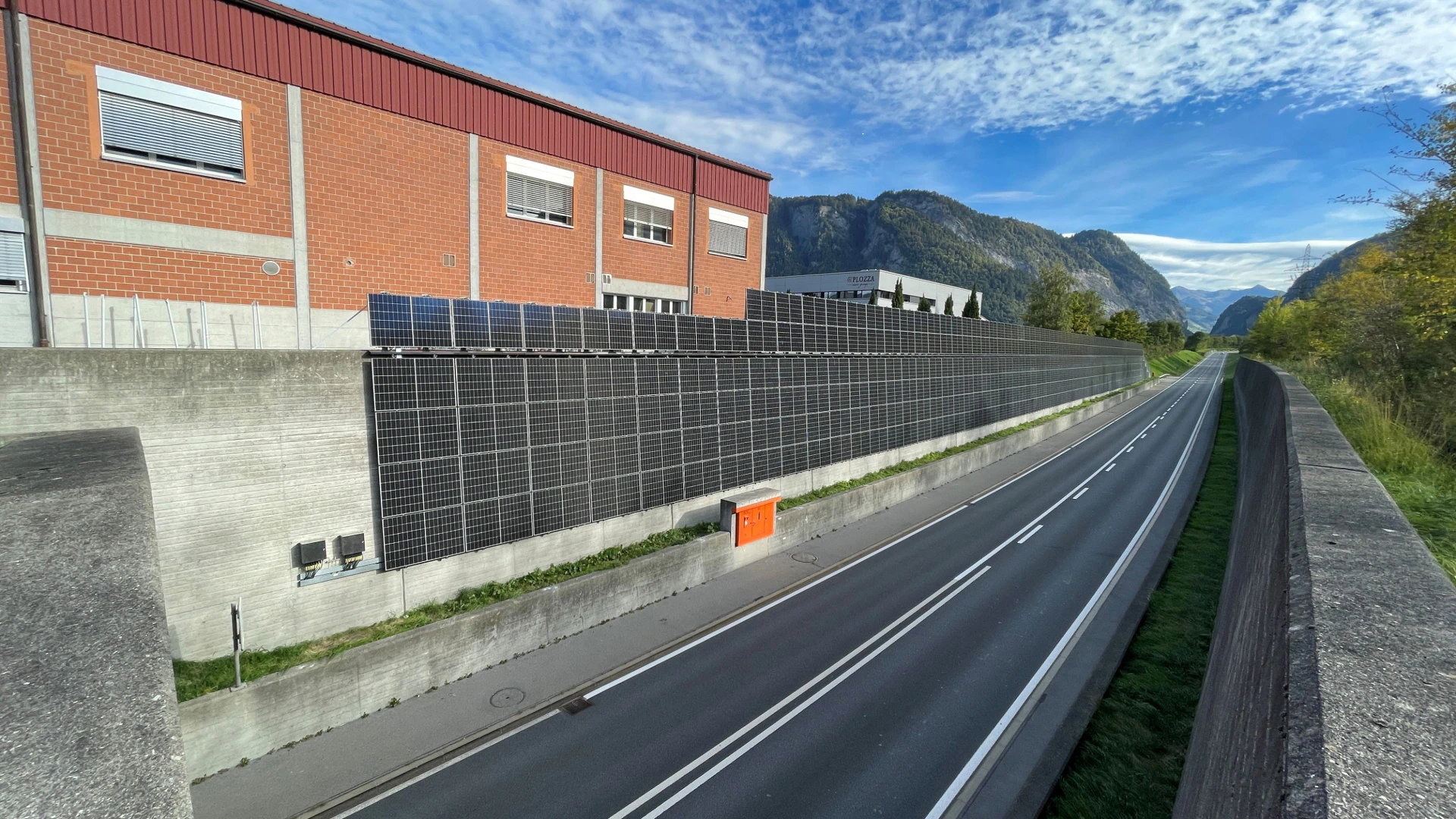 Insgesamt wurde total sechs Reihen PV-Module montiert. Dazu wurde vier Reihen auf die Wandmauer und zwei Reihen als Zaun oberhalb der Mauerkrone erstellt. Für die Installation auf der Mauer werden Konsolen direkt auf die Mauer montiert, auf welche die Montageschienen angeschraubt werden. Das PV-Panel wird dazu auf die Schiene montiert und mithilfe von Klemmen, welche an den Montageschienen angebracht wird fixiert. Für die Montage der PV-Module oberhalb der Mauerkrone wird ein ähnliches Prinzip wie bei der Wandmauer verwendet. Anstatt die Konsolen werden die Montageschienen auf H-Trägern montiert, welche hinten an der Wand montiert und abgestützt werden. Zusätzlich werden die Module hinten mit einem Zaungeflecht gegen Berührung geschützt.