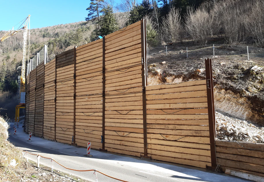 Die folgende Bilder zeigen die Bauweise der Schutzwand, wurden aber nicht auf der Brünigstrasse aufgenommen, es handelt sich um Symbolbilder. Die Fotos können bei Bedarf und auf Anfrage auch in besserer Qualität verschickt werden: