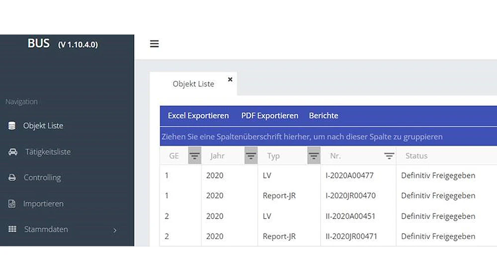 Mit der Fachapplikation Betrieblicher Unterhalt Sofortlösung (BUS) werden die Angebote und die Reportings der Gebietseinheiten erfasst und ausgewertet, sowie die Schweizer-Mittelwerte zur Verfügung gestellt.