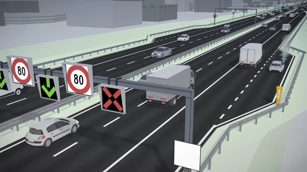 Auf Abschnitten mit Pannenstreifenumnutzung (PUN) weisen elektronische Signale über der Fahrbahn (sogenannte Fahrstreifenlichtsignalen) den Betriebszustand der Fahrstreifen aus. Zusätzlich geben Signale am Fahrbahnrand die jeweilige Anzahl der geöffneten Fahrstreifen an.