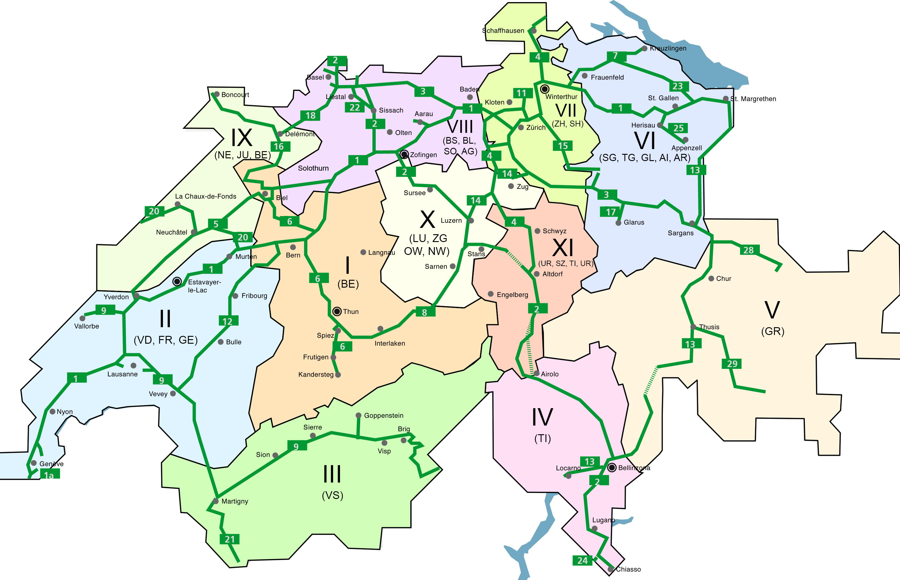 Die meisten Gebietseinheiten sind Teil von kantonalen Baudirektionen und sorgen für hohe Betriebsbereitschaft und sichere Befahrbarkeit rund um die Uhr.