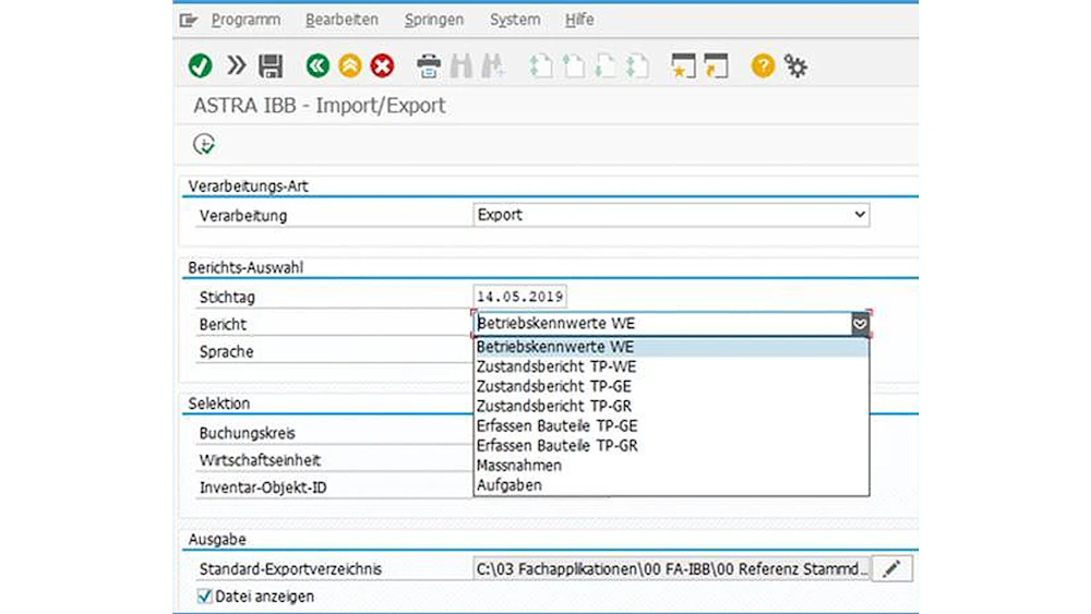 Die Infrastruktur Bauten Betrieb wird seit 2018 im SAP der Bundesverwaltung geführt und geben einen einfachen Überblick über die Betriebs- und Zustandsdaten der Werkhöfe und Stützpunkte.