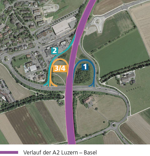 An zwei Wochenenden im Juni werden die Verzweigungsrampen in Fahrtrichtung Zürich und Luzern nachts gesperrt, damit ein neuer Deckbelag eingebaut werden kann. Für den Durchgangsverkehr steht die A2 dabei durchgehend zur Verfügung.