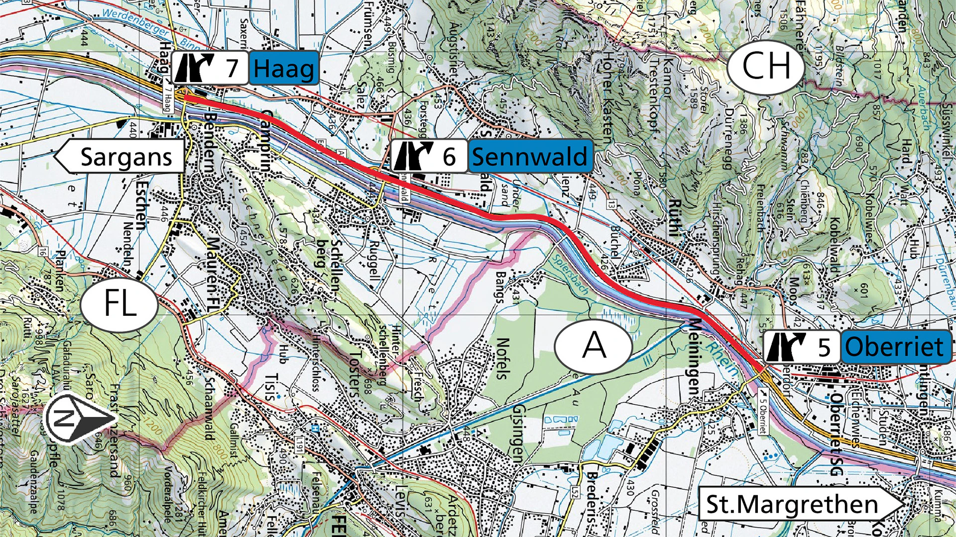 Die A1 zwischen Neudorf und Rheineck sowie ein Teil der A23 werden voraussichtlich ab 2029 instand gesetzt. Geplant sind umfangreiche Erneuerungen an Fahrbahn und Kunstbauten sowie die Realisierung eines Verkehrmanagementsystems. Die Kosten liegen bei rund 228 Millionen Franken.