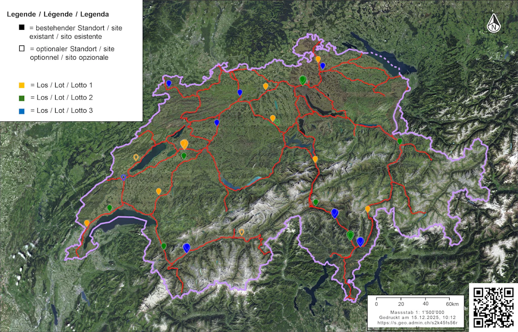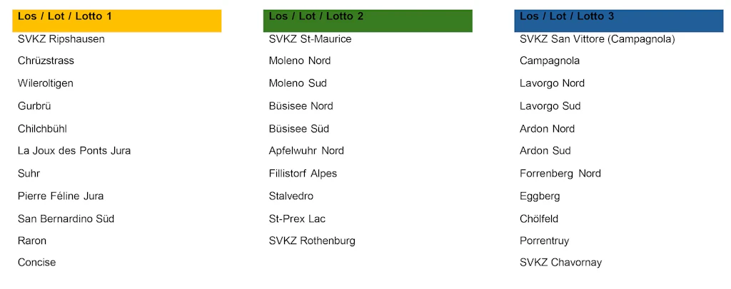 Neben dem SLS-Netz für Personenwagen entlang der Nationalstrassen, möchte das ASTRA nun auch SLS für E-LKW zur Verfügung stellen. Deshalb lanciert das ASTRA einen Projektaufruf, in dessen Rahmen drei Lose mit rund zehn Standorten auf ausgewählten Rastplätzen und Schwerverkehrskontrollzentren vergeben werden. Die Lose werden den bestbenoteten Gesuchstellenden in Form einer Reservationsvereinbarung zugewiesen. Somit können insgesamt drei Reservationen vergeben werden.