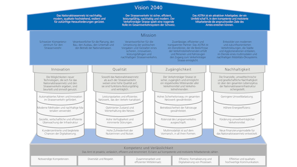 Während das Makroumfeld des ASTRA tiefgreifenden Veränderungen unterworfen ist, kann sich das Amt auf ein umfassendes strategisches Instrumentarium zur Steuerung seiner Aktivitäten abstützen. Dieses Instrumentarium besteht aus drei Ebenen.