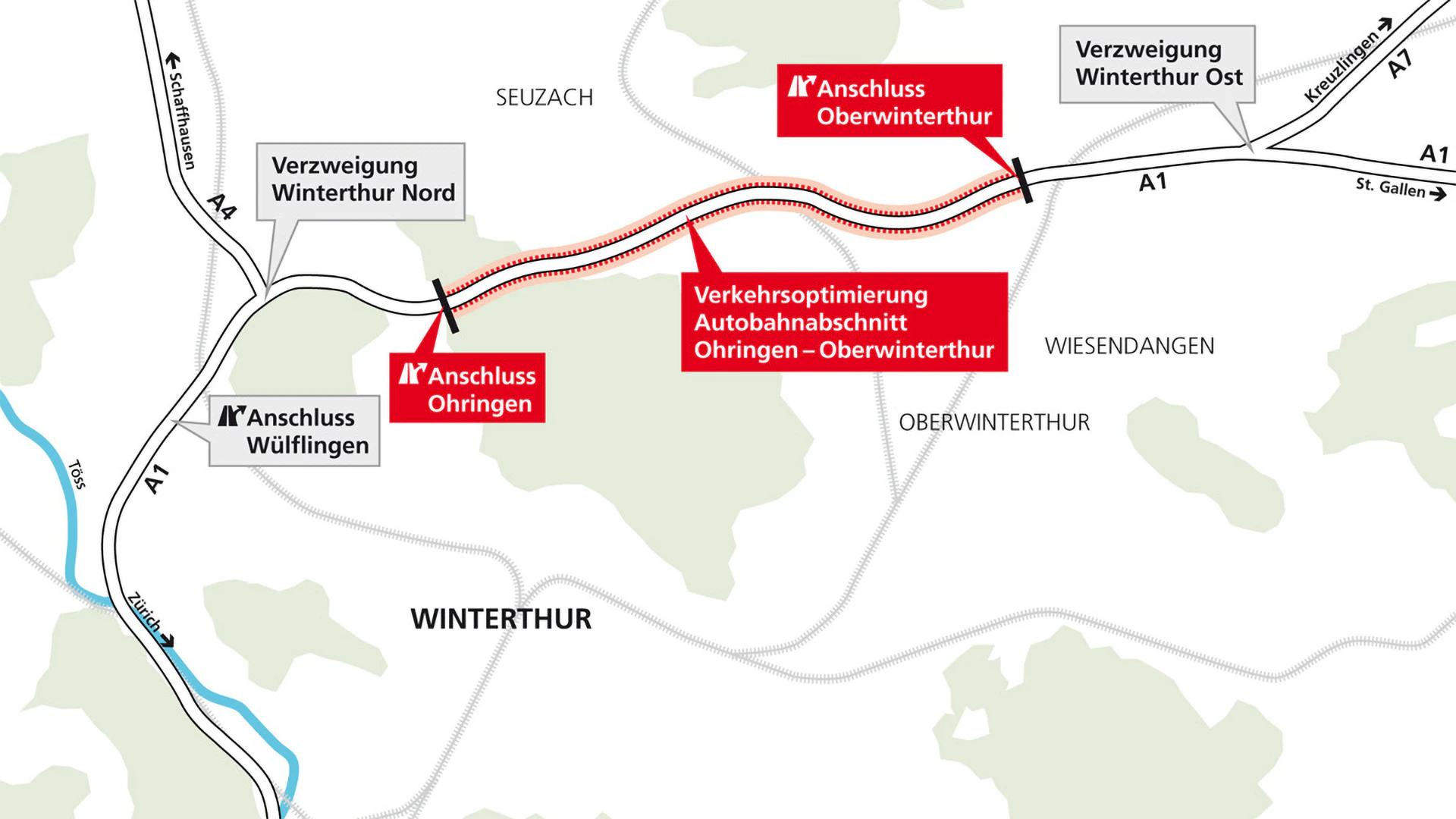 Die Autobahn A1 zwischen Winterthur Ohringen und Oberwinterthur erreicht in den Spitzenstunden ihre Kapazitätsgrenzen. Das Bundesamt für Strassen ASTRA setzte 2019 Massnahmen zugunsten einer Verkehrsoptimierung um. Dies mit dem Ziel, den Verkehrsfluss zu stabilisieren, die Überbelastung zu entschärfen sowie eine Minimierung des Rückstaus bei den Anschlüssen Winterthur Ohringen und Oberwinterthur zu erreichen. Die Arbeiten wurden von Mitte März bis Ende November 2019 umgesetzt. Die Inbetriebnahme ist auf Anfang 2020 vorgesehen.
