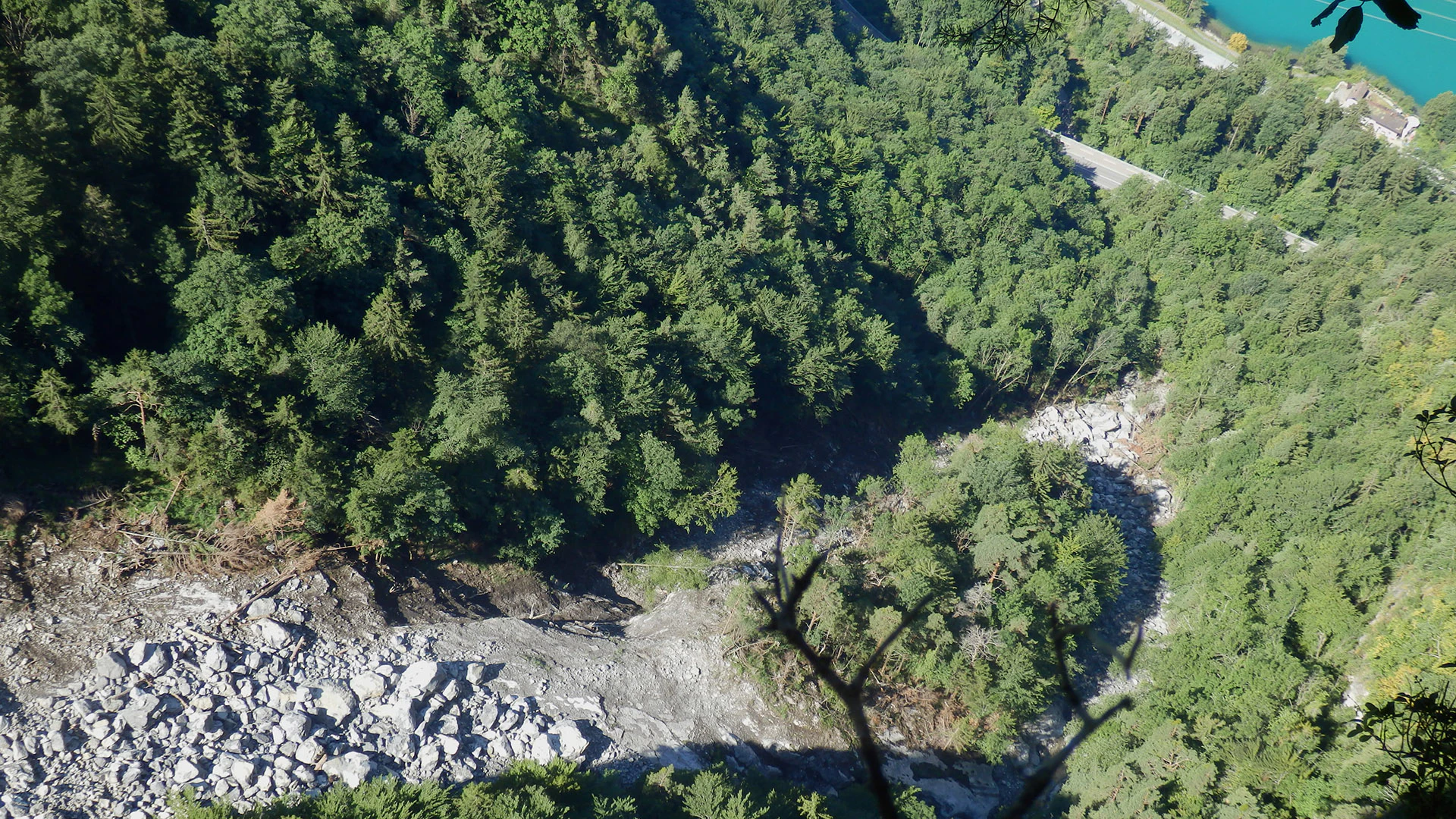 - Im Bereich zwischen dem Südportal Mositunnel und dem Rastplatz Wolfsprung wird eine physische Trennung von Trottoir und Strasse eingerichtet. Das Fahrzeugrückhaltesystem verhindert das Befahren des Trottoirs. Die Leiteinrichtung dient gleichzeitig als Absturzsicherung für die Fahrzeuge auf der Strasse.
