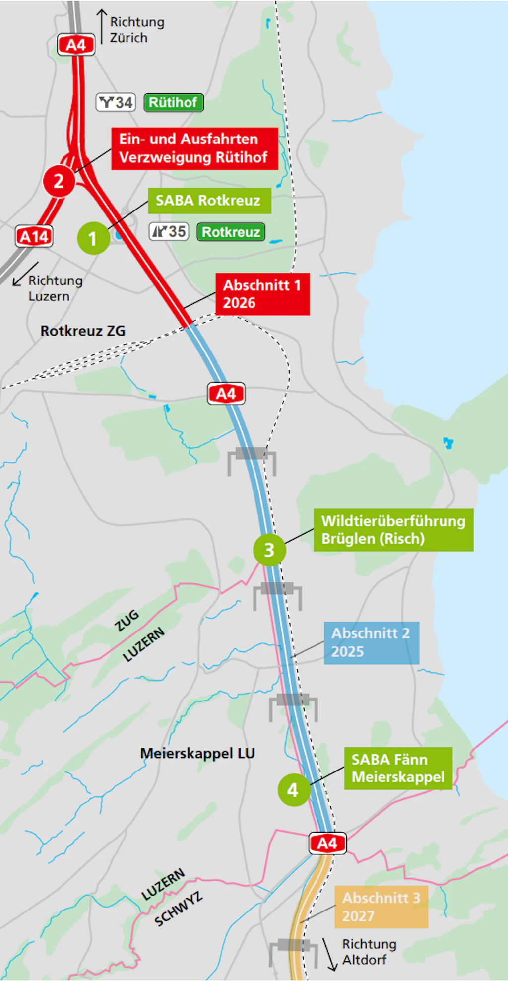 2027: Abschnitt 3, A4 zwischen Kantonsgrenze ZG/SZ und Anschluss Küssnacht