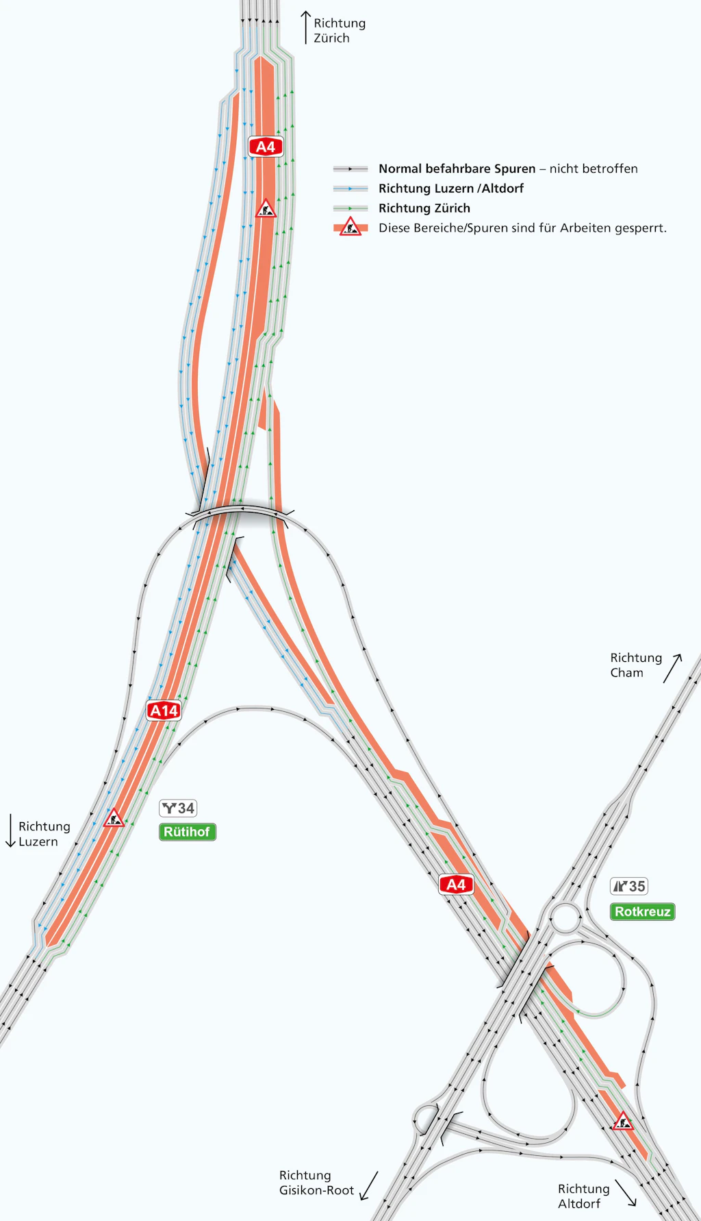 Aller au contenu principal2026: Abschnitt 1, A4 und A14 im Bereich der Verzweigung Rütihof