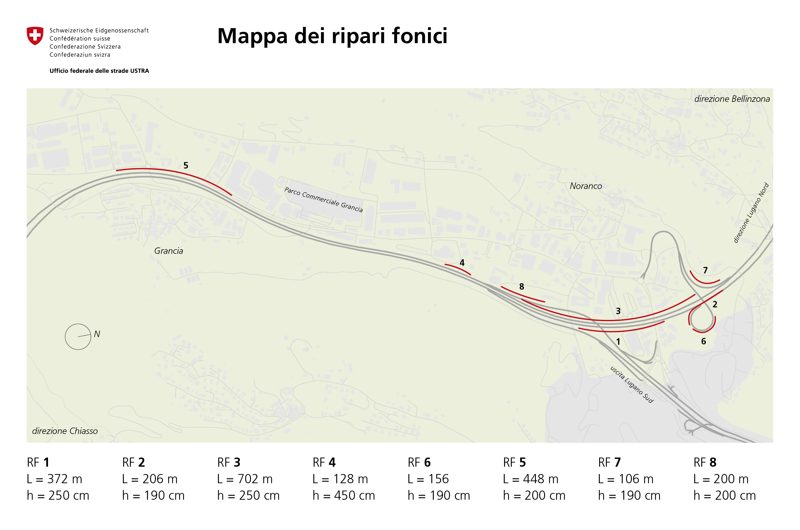 A2 Melide-Gentilino, da km 20.440 (portale nord galleria Melide‐Grancia) a km 23.330 (portale sud galleria di Gentilino), comprese le bretelle autostradali.