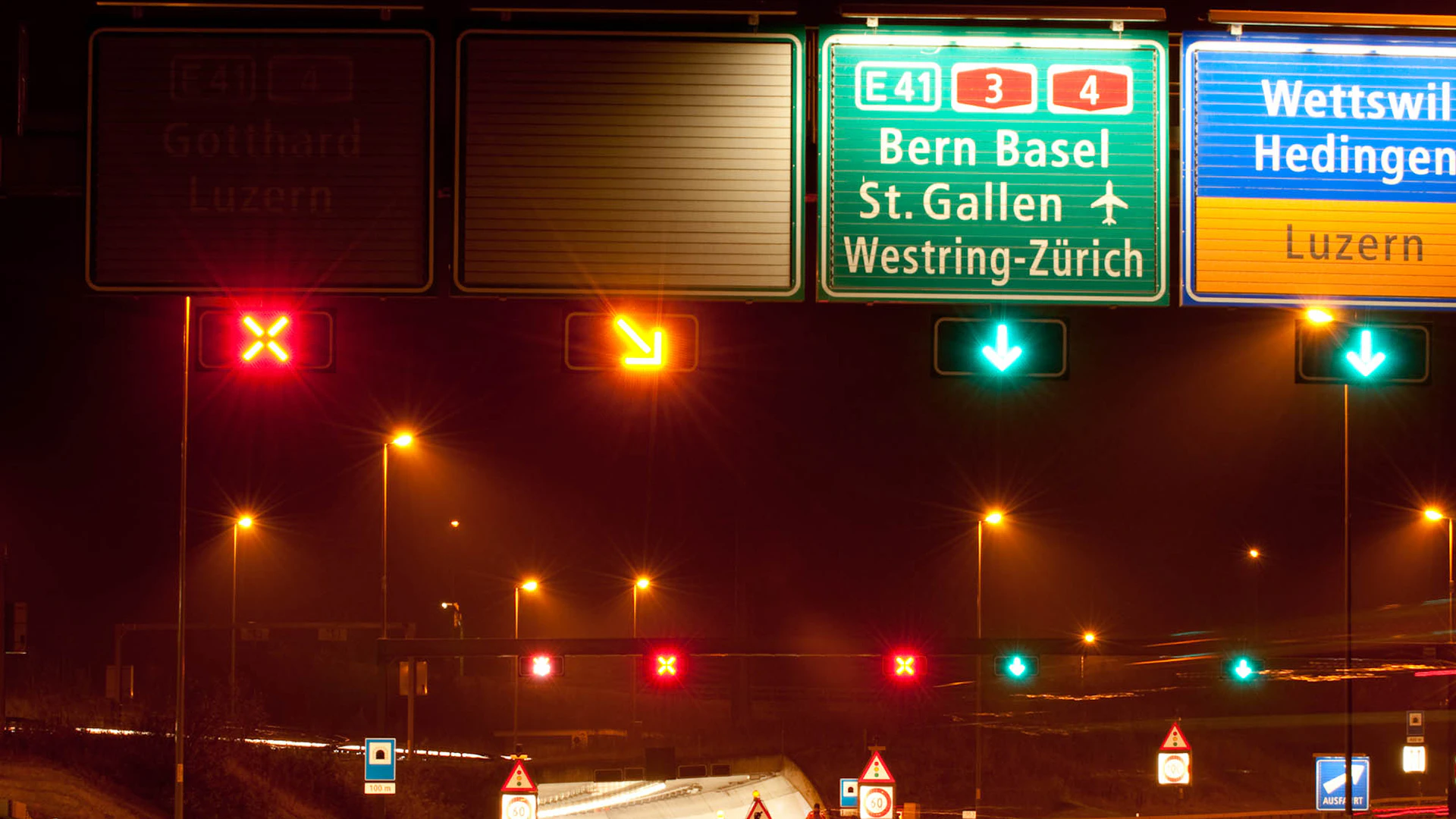 «Stau über die nächsten 5 Kilometer», «Achtung Glatteis», «Baustelle» – je früher die Verkehrsteilnehmenden erfahren, wenn es auf der Autobahn irgendwo harzt, desto besser. So haben sie die Möglichkeit, ihre Fahrweise entsprechend anzupassen.
